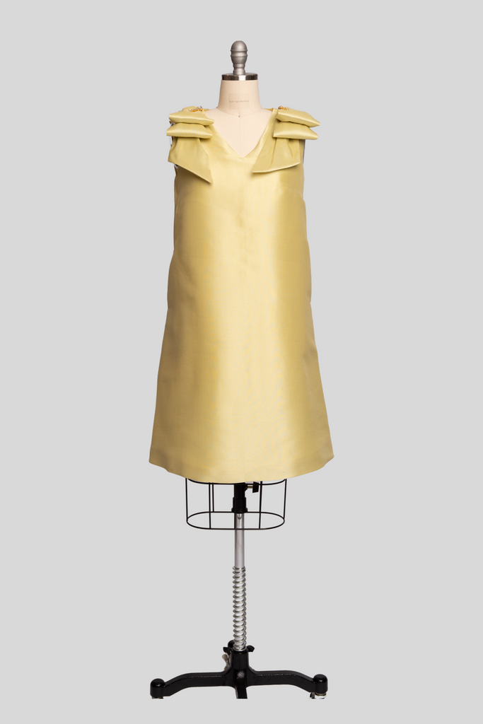 Fit: A-line shift with sculptural bow shoulder detail